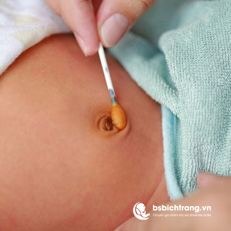 - Nếu rốn rỉ dịch vàng nhạt từng giọt nhỏ, dùng gạc sạch thấm khô, không bịt kín.
