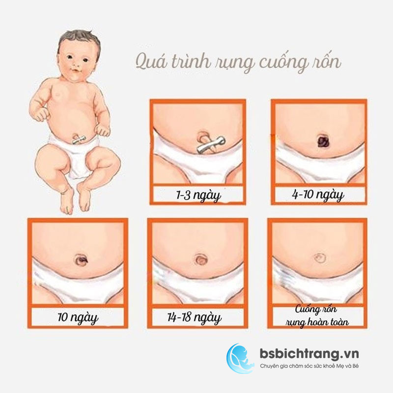 - Cách chăm sóc: rốn khô thoáng và sạch sẽ giúp cuống teo nhanh; trái lại, rốn ẩm ướt hoặc bôi thuốc không đúng làm chậm rụng, tăng nguy cơ viêm.