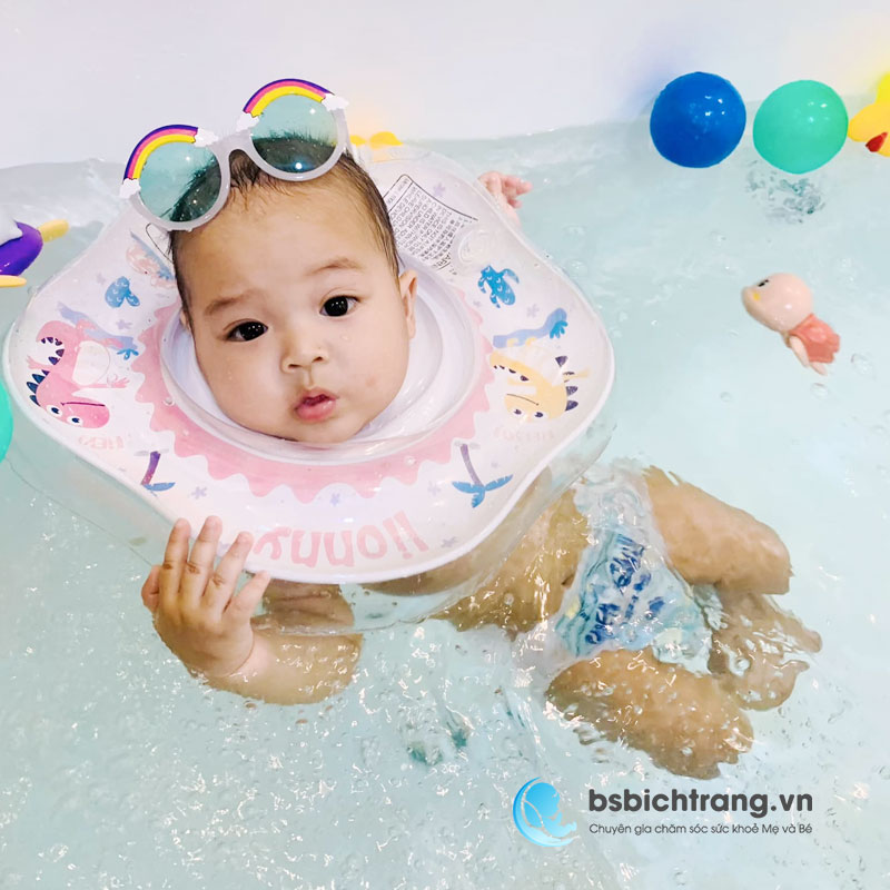 - Trẻ đủ 10 ngày tuổi, rốn khô và lành, cân nặng trên 2,5 kg, không nhiễm trùng da, tim phổi ổn định có thể bơi dưới sự giám sát bác sĩ.