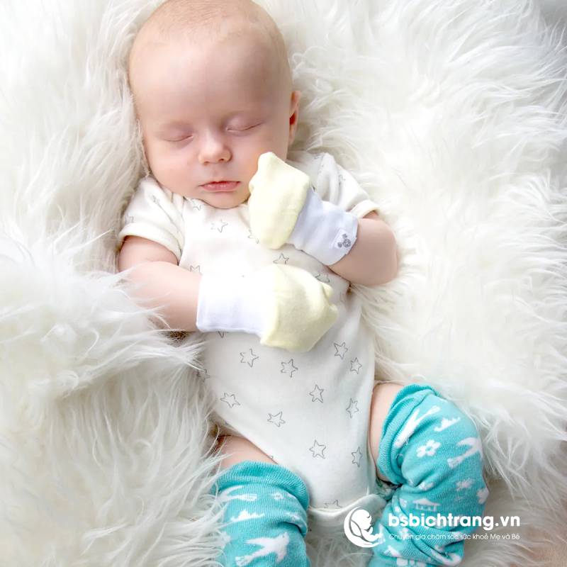 Bảo vệ khỏi trầy xước: Móng tay sơ sinh mọc nhanh, sắc, bé hay quờ quạng lên mặt. Găng tay mỏng ngăn vết cào xước.