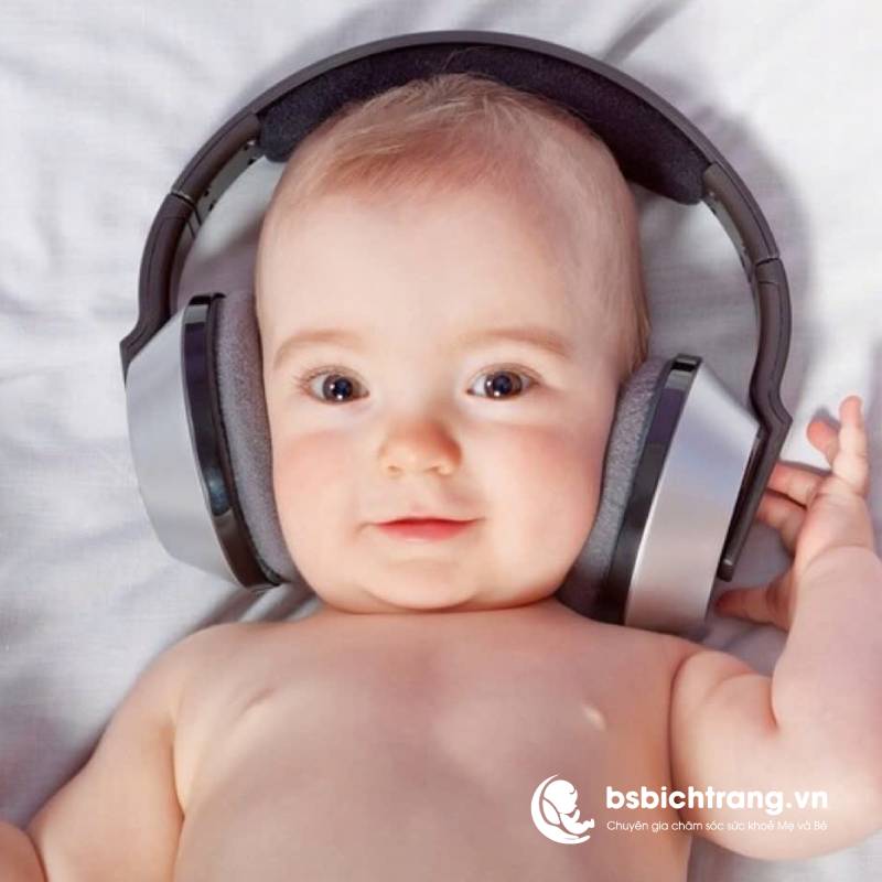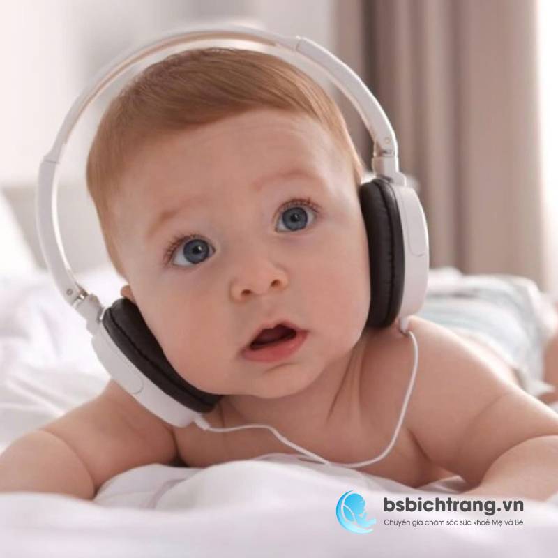 - Tránh dùng tai nghe. Khoảng cách từ nguồn phát tới bé tối thiểu 1 m, âm thanh khuếch tán đồng đều.