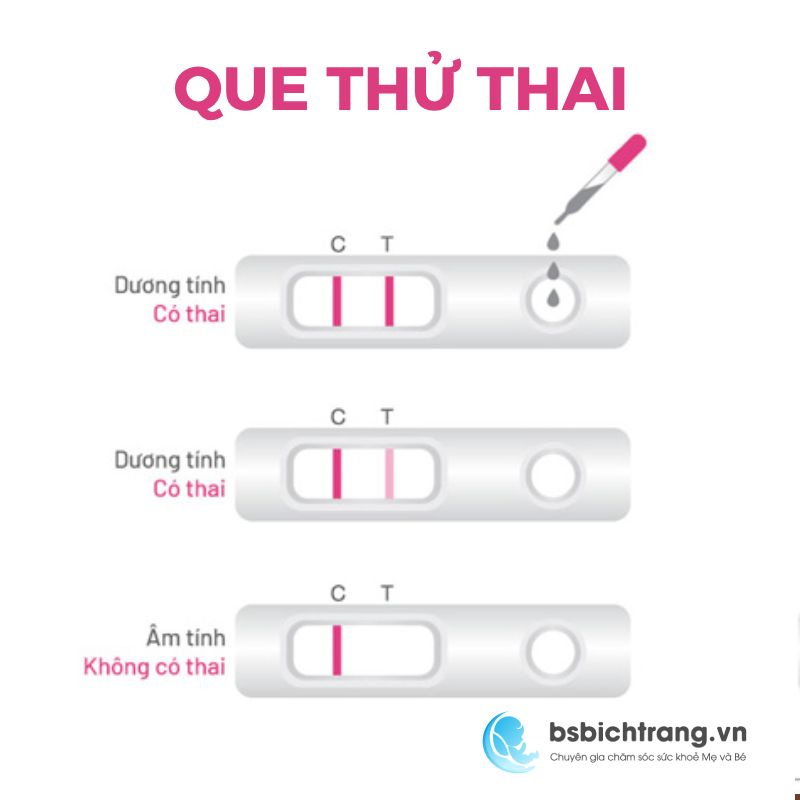 - Dùng que thử thai ở thời điểm nào cho kết quả chính xác nhất? Ít nhất ngày đầu tiên trễ kinh, tốt nhất 5-7 ngày sau trễ kinh và sử dụng nước tiểu đầu buổi sáng.