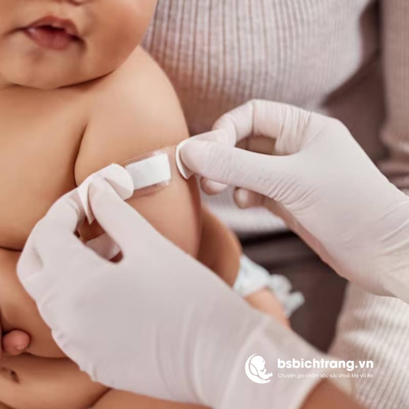 Sau tiêm, để bé nằm hoặc ngồi yên, không xoa bóp vết tiêm vì có thể làm vắc xin thoát khỏi cơ.