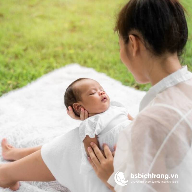 - 7–14 ngày tuổi: Bé khỏe mạnh, bú tốt, không vàng da nặng, có thể bế ra ban công hoặc sân vườn thoáng khí trong 5–10 phút dưới bóng râm.