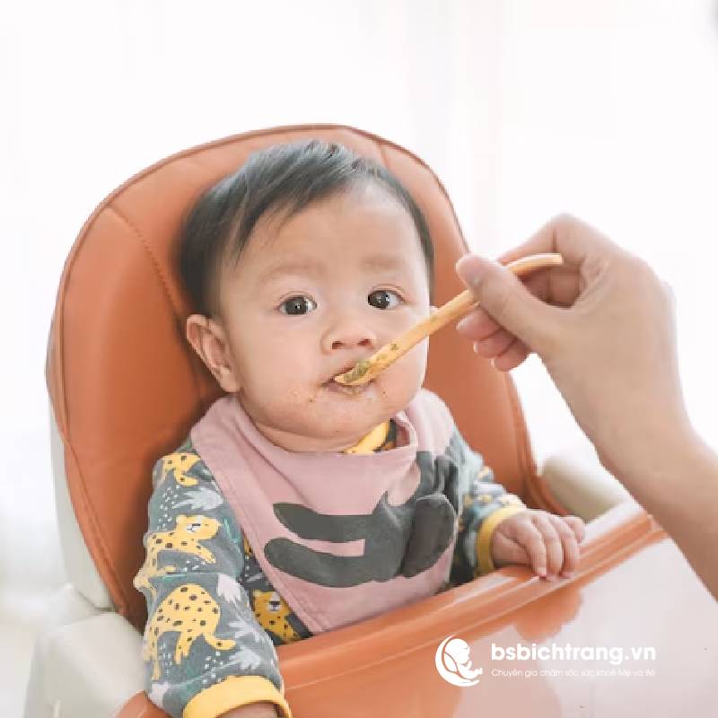 - An toàn vệ sinh: Rửa tay, ghế, khay ăn; dụng cụ riêng; tránh nêm muối tới 12 tháng tuổi.