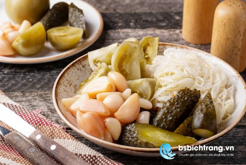 Trong giai đoạn đầu thai kỳ, việc giữ ổn định huyết áp là yếu tố then chốt để đảm bảo sức khỏe cho cả mẹ lẫn thai nhi. Mẹ bầu cần chú ý không nên ăn quá mặn hay dùng nhiều thức ăn chế biến sẵn chứa hàm lượng muối cao. Dưa muối thường chứa nhiều muối và gia vị, có nguy cơ làm tăng huyết áp, tạo áp lực không tốt lên hệ tim mạch và thận của mẹ bầu. Ngoài ra, một số sản phẩm lên men thiếu kiểm soát về thời gian và nhiệt độ cũng có thể chứa vi sinh vật gây hại.