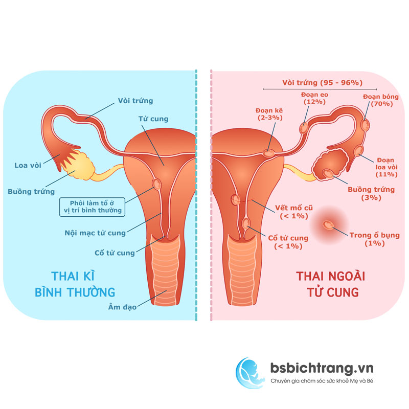 Thai ngoài tử cung (ectopic pregnancy) xảy ra khi trứng đã thụ tinh không di chuyển vào buồng tử cung mà “lạc chỗ”, bám vào một vị trí khác trong hệ sinh dục hoặc ổ bụng. Dễ gặp nhất là: